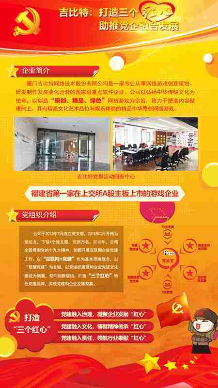 未来公司将全面学习贯彻习近平新时代中国特色社会主义思想和党的十九大精神,,,持续强化“互联网+党建”的思维理念,,以“智慧党建”为主轴,,,以党组织建设和企业先进文化建设为侧翼,,,,双向创新驱动,,引领有信仰、、、有情怀、、、有价值的新时代游戏研发运营,,,,在不断发展壮大的同时,,,成为行业的“红色标杆”,,,,实现党建和企业发展双赢。。